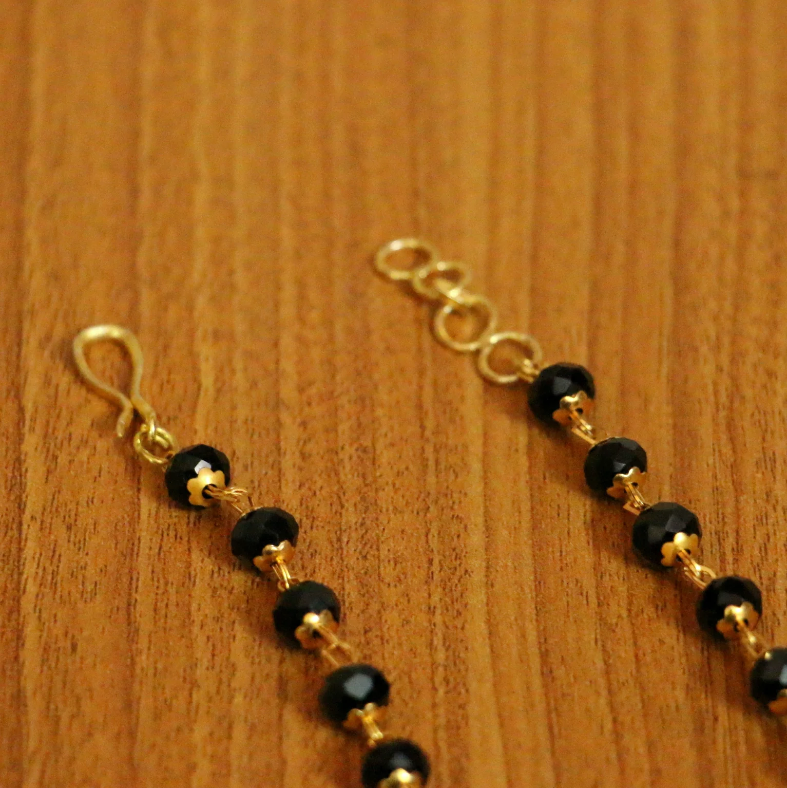 This magalsutra is handcrafted in silver alloy with black crystal and antique gold plated bead of fine quality , the mangalsutra is finished with 18kt fine nickle free gold plating , the design itself is very unique and very light in weight .