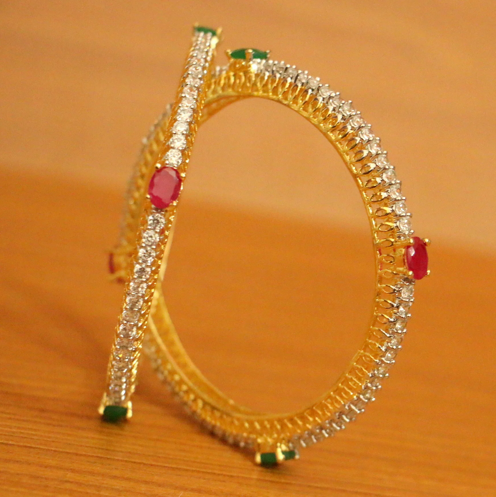 DIAMOND LOOK RUBY & EMERALD LOOK GOLD PLATED BANGLES