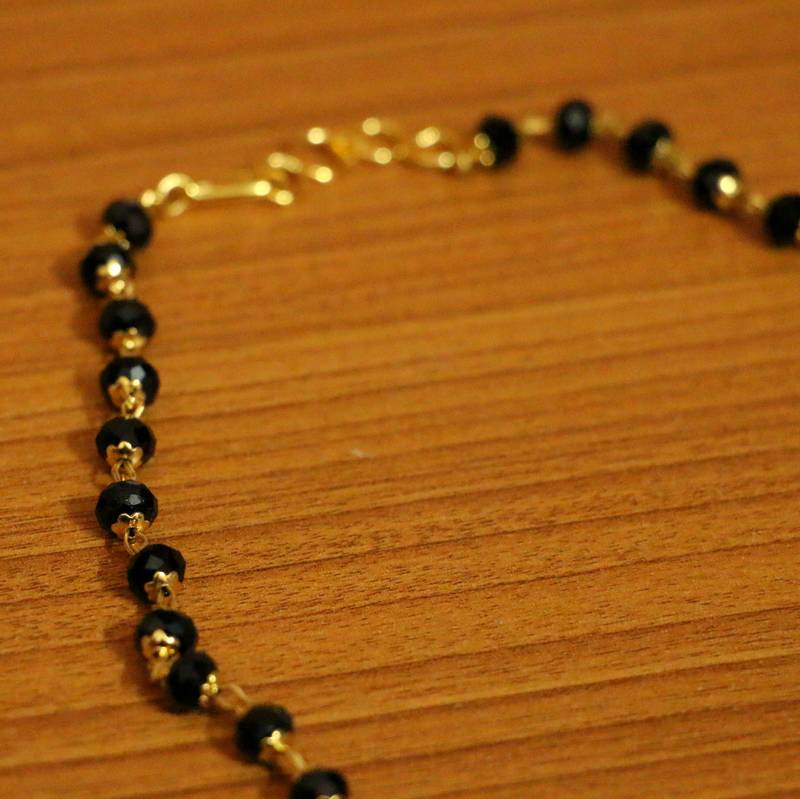 This beautiful mangalsutra is handcrafted in brass alloy with imitation gold look bead work of very fine quality . This mangalsutra is coated with 18 kt gold polish which give them a unique look . An absolutely stunning piece to own and are very light in weight.