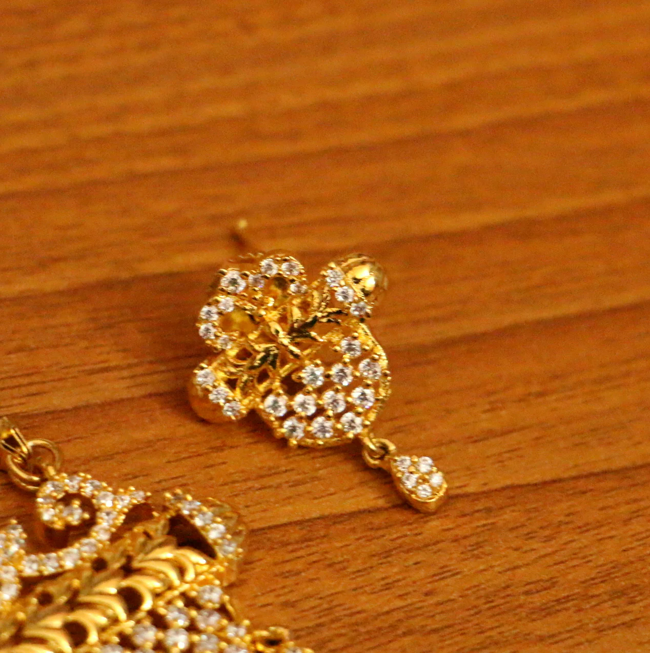 This diamond look mangalsutra is handcrafted in silver alloy with imitation cz stones of very fine quality , the mangalsutra is very light in weight and plated with 18kt gold rhodium to give it a real diamond look.