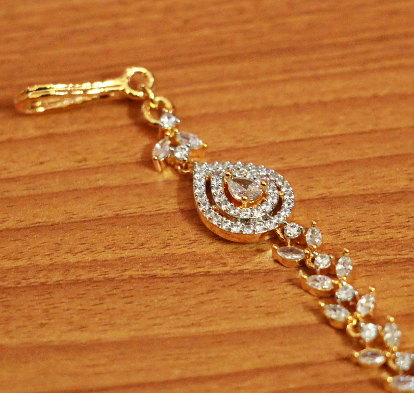 Gold Plated Diamond Look Wedding Maang Tikka