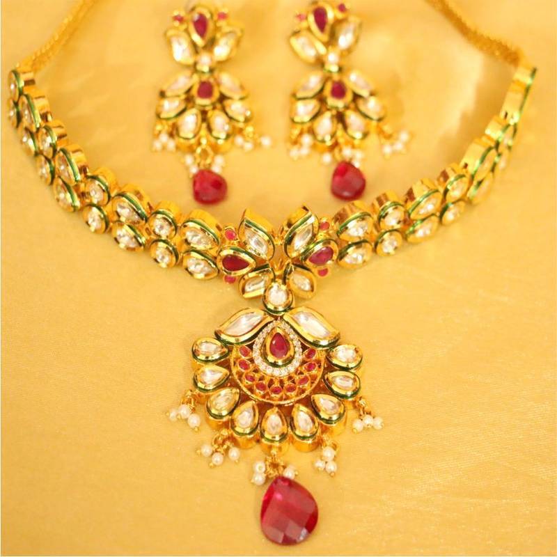 Kundan Meenakari Ruby Choker Necklace Set