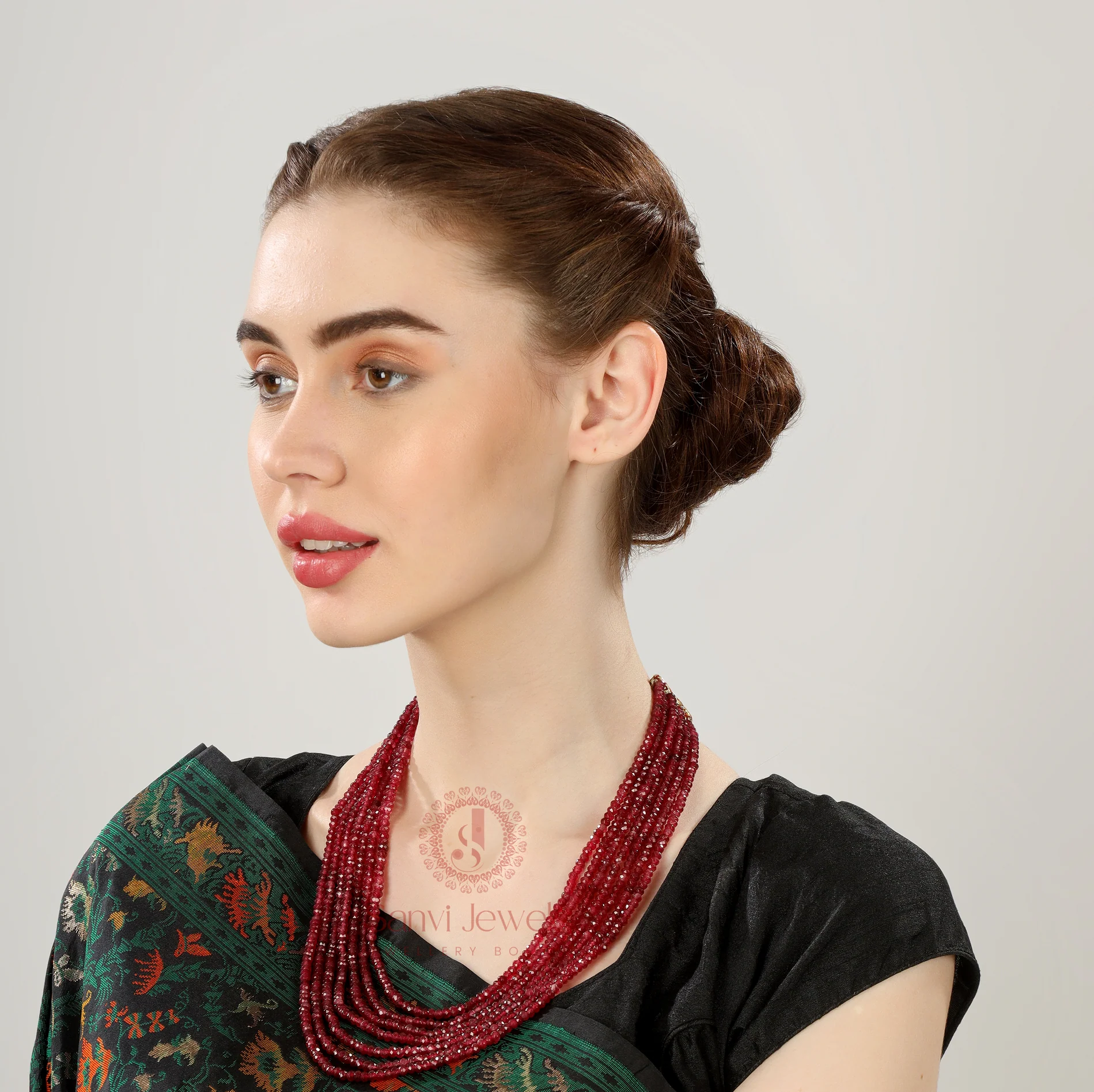 Semi Precious Ruby Colour 7 Line Necklace Set